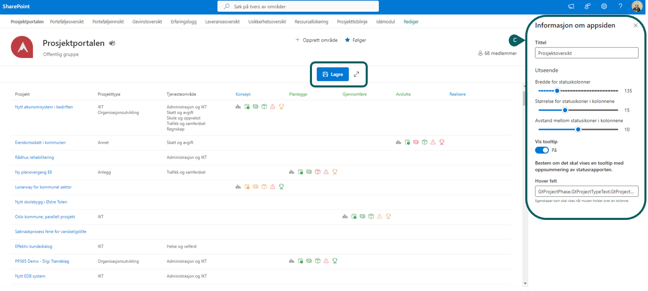Prosjektoversikt gir en oversikt over alle prosjektene på tvers av porteføljer.