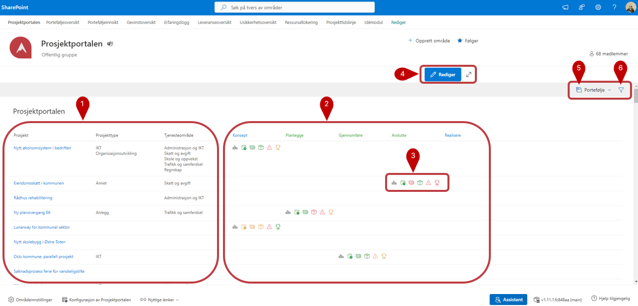 - Prosjektfase: Her ser du hvilken fase prosjektene er i.