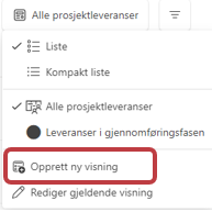 Her kan du velge mellom eksisterende visninger, redigere visning og opprette ny visning